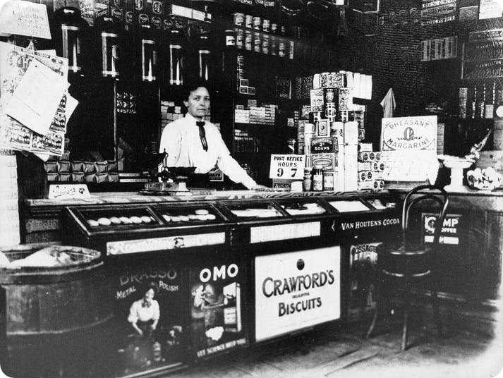 A woman behind the counter of a general store. Cambridge, circa 1920. View in-full in the Findmypast Photo Collection.