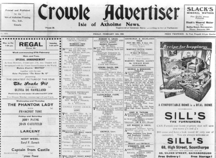- Crowle Advertiser and Isle of Axholme News, 1875, 1878-1879, 1881-1883, 1887-1889, 1891, 1893, 1950, 1986
