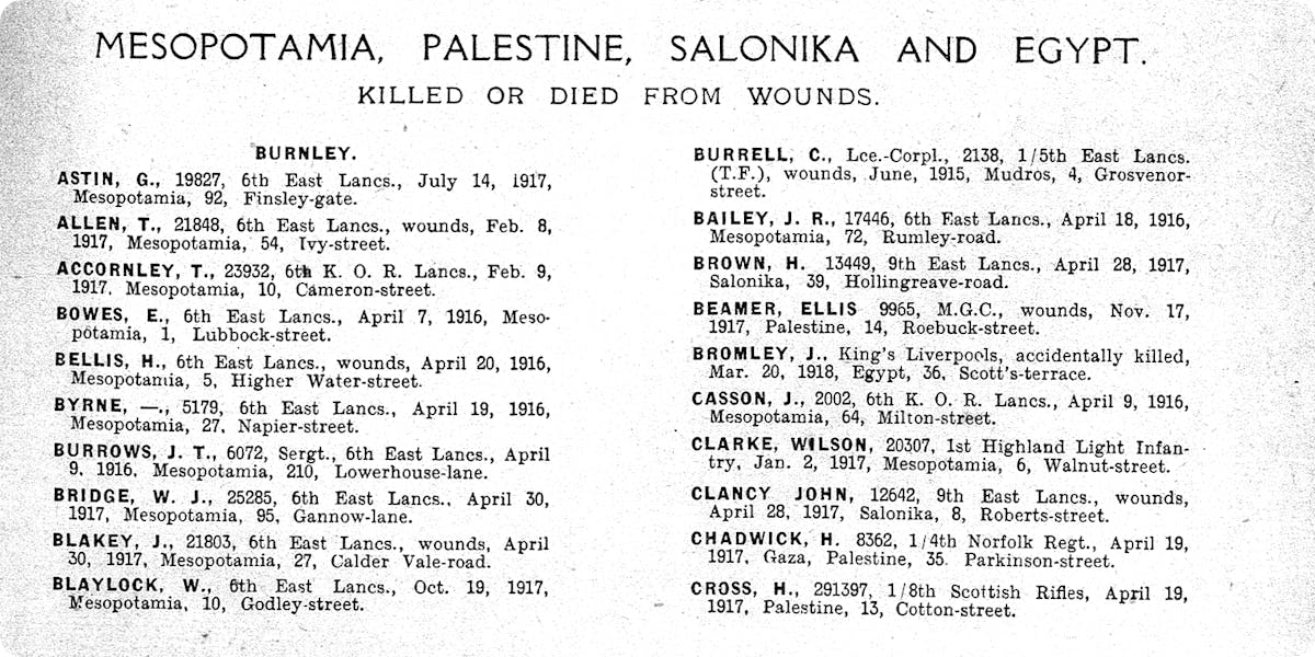 This focused collection details those from the Greater Burnley area of Lancashire that lost their lives during the First World War.