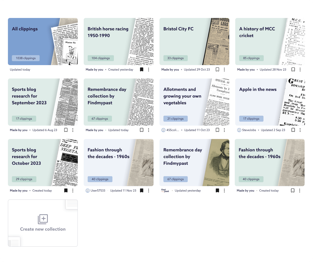 Organise the newspaper clippings you find in our archives into collections. Sort your findings by topic, or follow the thread of a story through time - you're the curator.