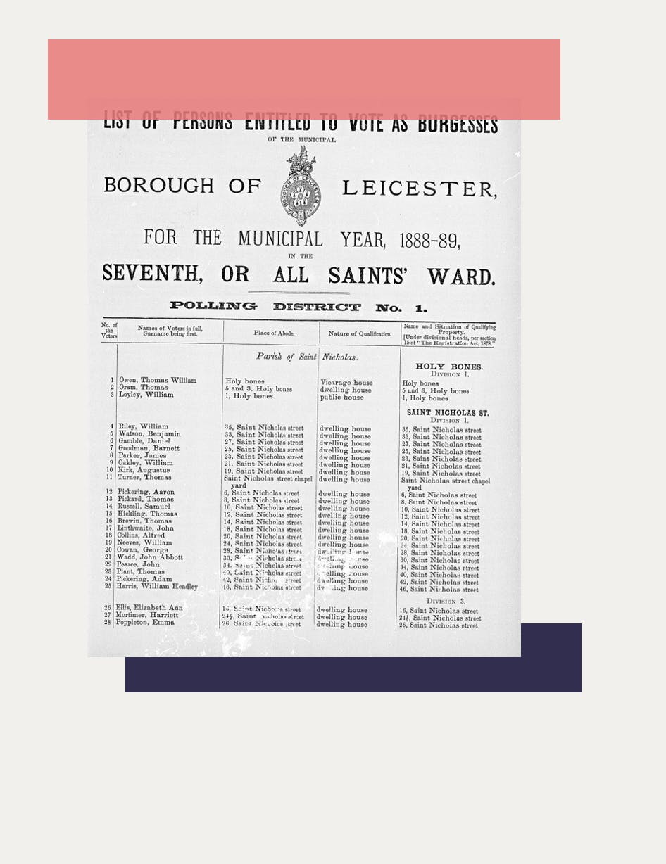Thanks to our partnership with The Record Office for Leicestershire, Leicester and Rutland, you can now also explore thousands of names included on electoral registers for Leicestershire between 1836 and 1970. Delve into this collection and you may also discover previous owners of your home and their neighbours.